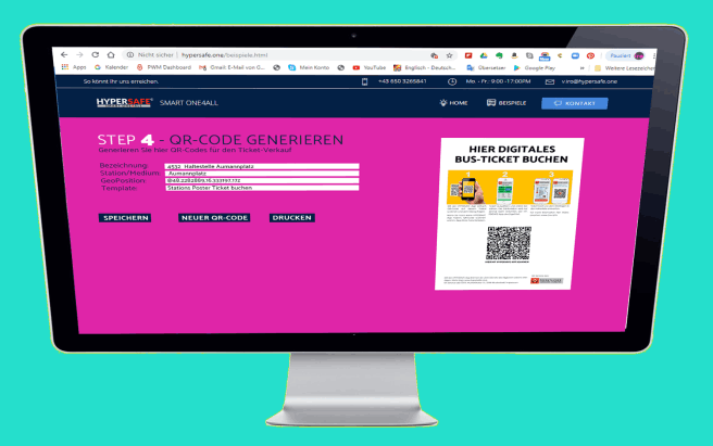 Es können beliebig viele QR-Codes generiert werden, die je nach Einsatzgebiet unterschiedliche Informationen beinhalten. Die QR-Codes können dann auf allen Print und Online-Medien zum Kauf von Tickets eingesetzt werden.