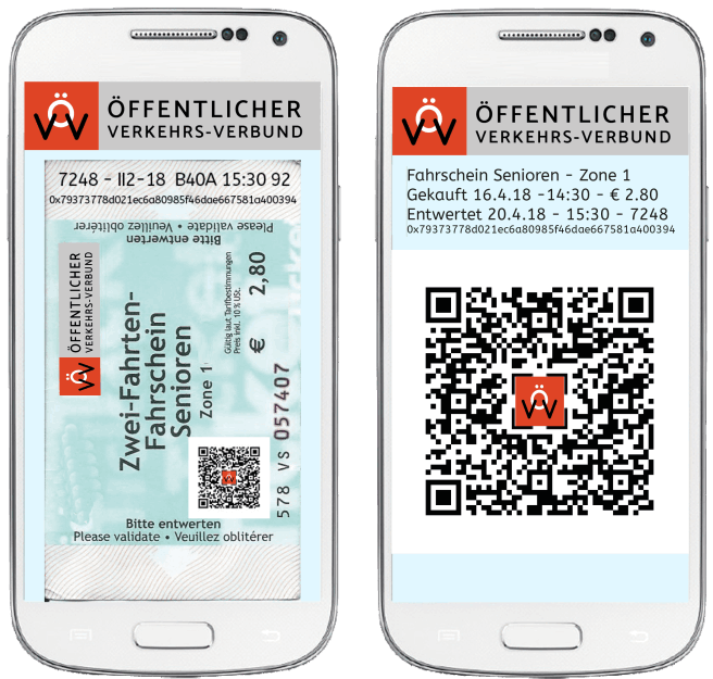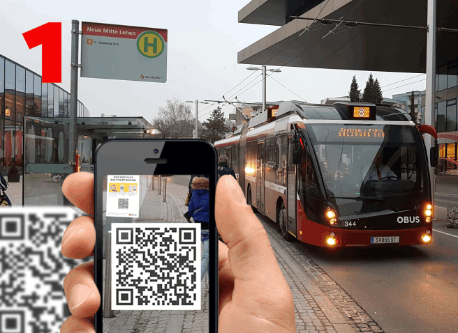 Mit nur einer App weltweit Öffi´s nutzen, Tickets kaufen: einfach QR-Code scannen. Auf einer Webseite, auf Plakaten, im Bus, in der Haltestelle. Das System erkennt autonom welcher Verkehrsverbund und offeriert die verfügbaren Tarife. Entwerten: vor dem Einsteigen mit Button oder NFC im Bus, in der Haltestelle. Fertig.
